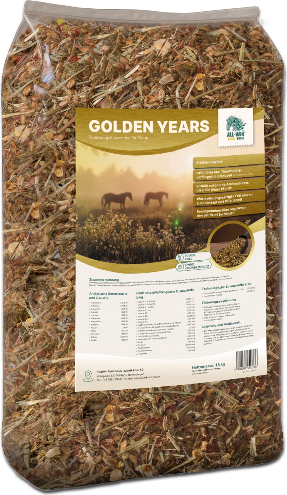Golden Years de ALL-WIN Horse: muesli para caballos mayores, sin avena y sin azúcares añadidos