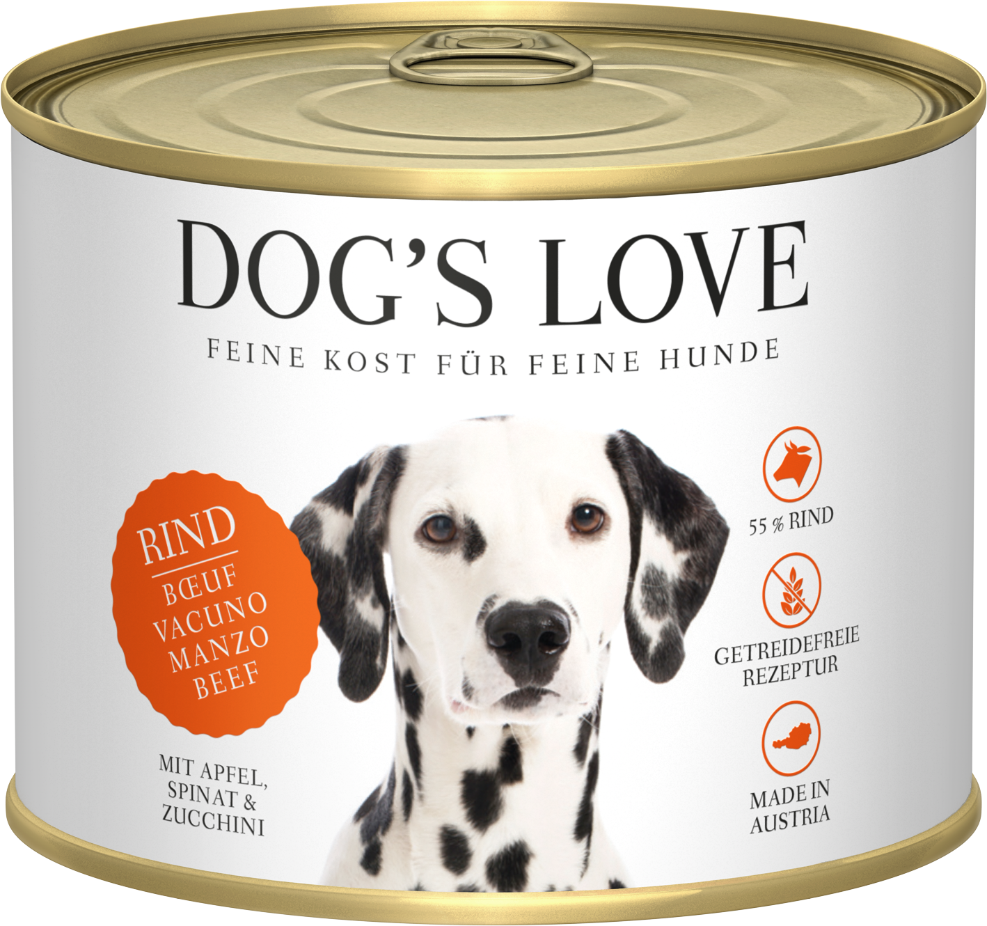 Menú completo de comida natural con comida 100% de calidad con un 55% de carne, muchas verduras y frutas frescas para perros adultos. Los menús de DOG'S LOVE están adaptados de manera óptima a las necesidades nutricionales del perro y también son adecuados para perros sensibles a la nutrición.