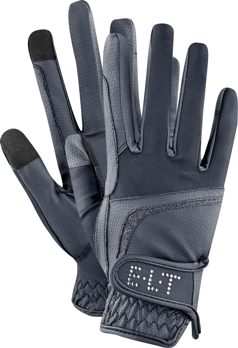 Destacan especialmente los detalles refinados, como la tira decorativa brillante y la elegante inscripción E·L·T con strass en el cierre. Además de su diseño, el guante impresiona por sus características técnicas: es totalmente compatible con pantallas táctiles, lo que permite usar el smartphone sin quitarse el guante. Los refuerzos integrados para las riendas garantizan además durabilidad y un agarre seguro en la boca del caballo.