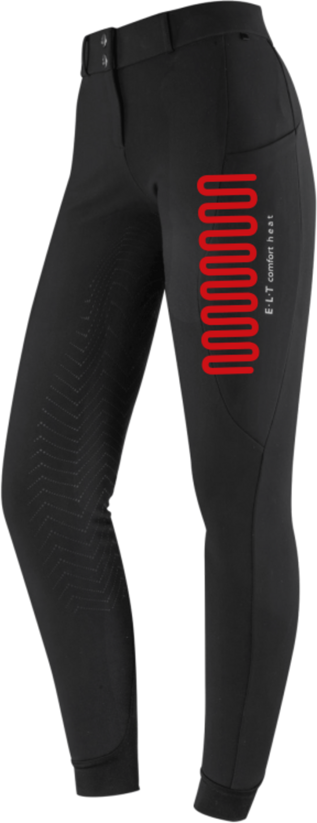 Los pantalones de montar calefactables Comfort Heat de E·L·T te garantizan calor, flexibilidad y comodidad en la silla, incluso en los días más fríos. Gracias a tres elementos calefactores integrados, dos en los muslos y uno en la parte baja de la espalda, obtendrás un calor relajante y constante exactamente donde más lo necesitas durante las cabalgatas. El botón lateral te permite ajustar la temperatura a tu gusto y la pantalla a colores muestra inmediatamente qué configuración está activa. El material elástico, la cintura alta moldeada y el asiento totalmente de silicona ofrecen libertad de movimiento, sujeción y un ajuste óptimo. Puedes conectar cómodamente tu batería externa a través del puerto USB integrado en el bolsillo derecho. Perfecto para entrenar, trabajar en la cuadra y dar largos paseos a caballo en los meses más fríos.