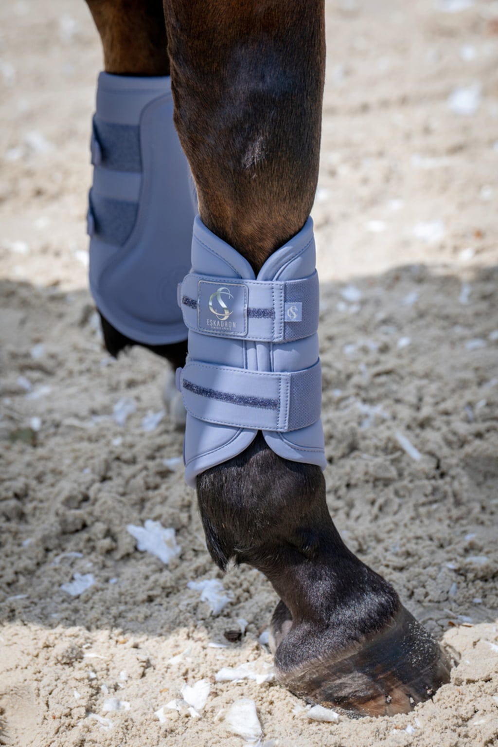 Los protectores Softshell Jewel combinan un material exterior repelente al agua con un interior de malla altamente transpirable. Los brillantes cierres de velcro Jewel son un detalle visual de gran impacto que combina perfectamente con las mantillas de la colección y hace que tu caballo destaque durante el entrenamiento.