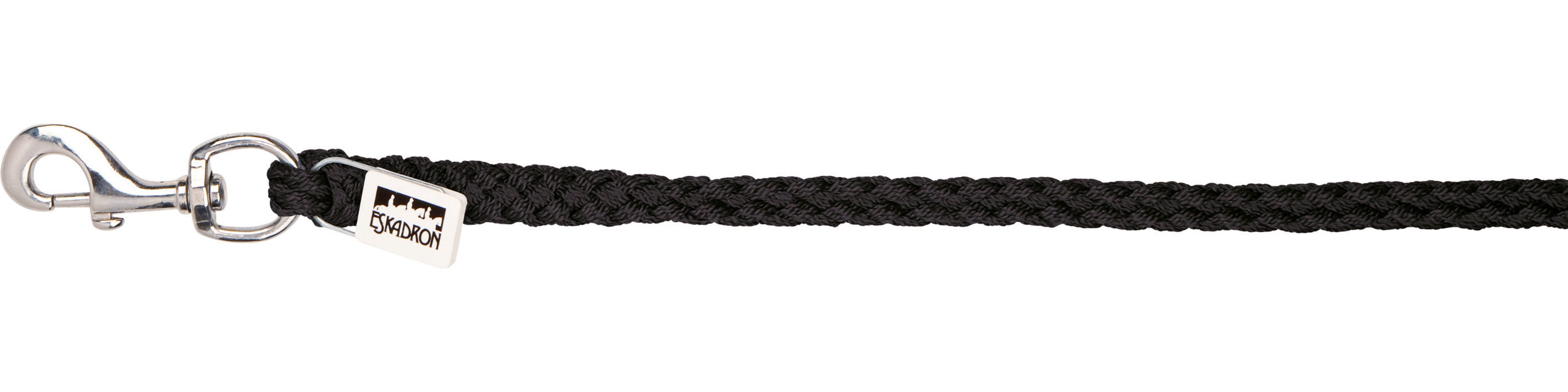 Esta rienda con mosquetón niquelado garantiza la seguridad durante el amarre. El resistente hilo de polipropileno es duradero y la placa identificativa facilita la identificación del caballo.