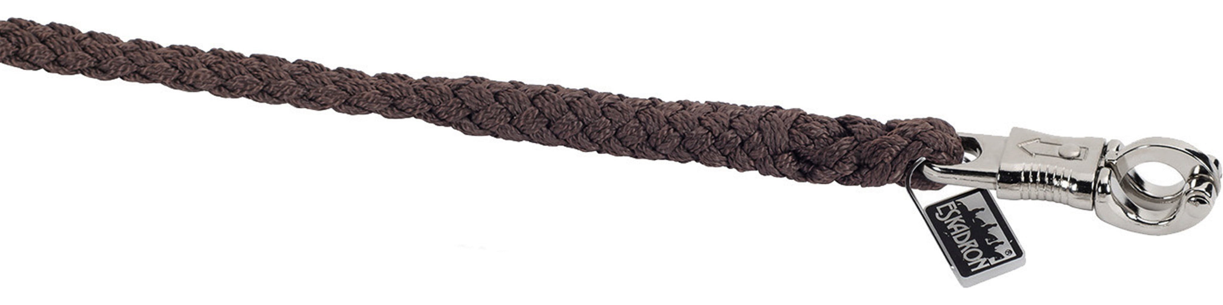 Con esta rienda de alta calidad, podrás asegurar a tu caballo de forma rápida y sencilla. El gancho antipánico ofrece una solución sencilla en situaciones de emergencia, mientras que el hilo trenzado de polipropileno es muy resistente. Una placa con el nombre permite la identificación personal.