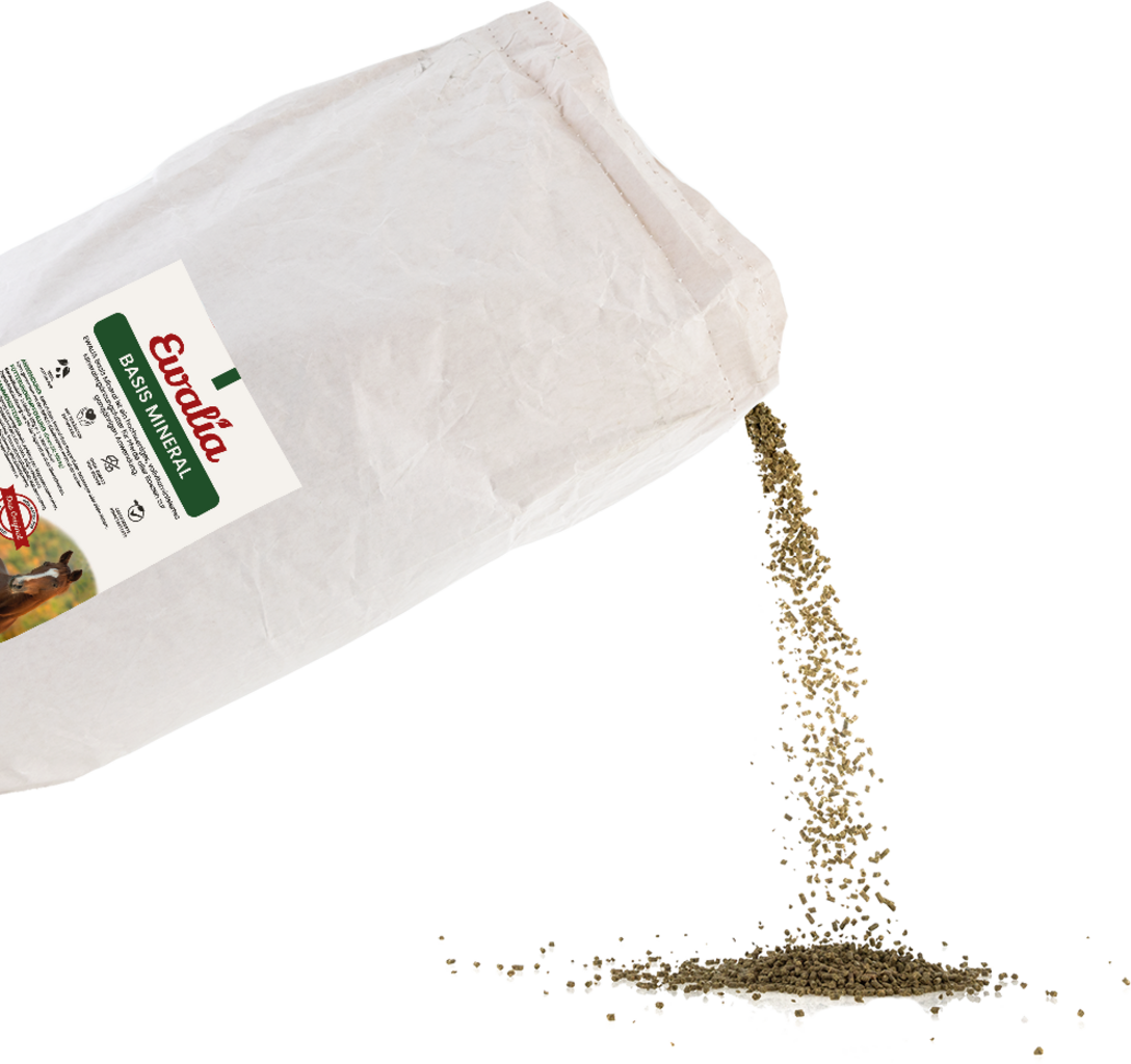 Uso: mezclar el producto con el pienso o administrarlo solo. No es necesario humedecerlo. Opcionalmente, se puede administrar junto con las bebidas de hierbas Ewalia.