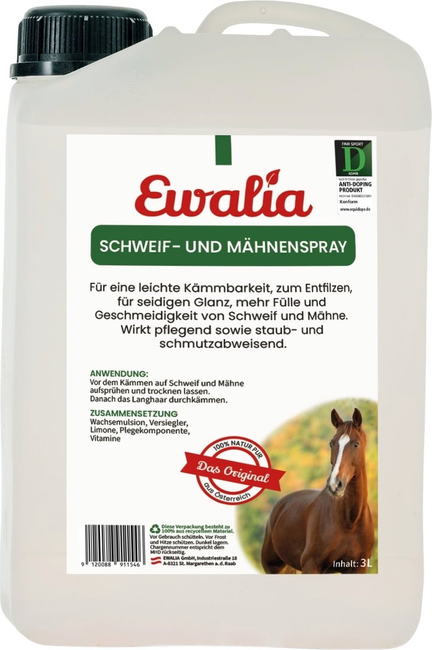 ¡Hazque la cola y la crin de tu caballo se mantengan brillantes, voluminosas, suaves y agradablemente flexibles! Este fantástico producto de Ewalia elimina los residuos y mejora la peinabilidad. Además, la fórmula cuida la zona y tiene efecto antisuciedad y antihumedad.