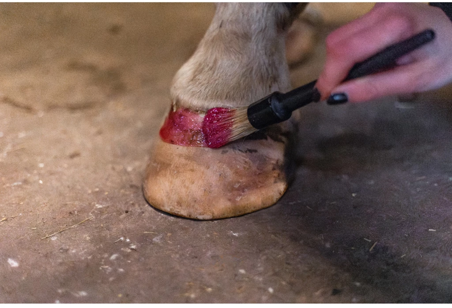 - Fórmula transpirable: a base de agua y sin grasas ni aceites, el esmalte protege la pezuña sin sellarla. La pezuña puede seguir «respirando» de forma óptima.