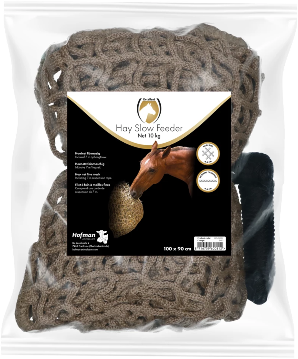 Esta resistente red para heno garantiza una ingesta lenta y uniforme del heno, favoreciendo el comportamiento alimenticio natural del caballo. Fabricada en polipropileno resistente, garantiza una gran durabilidad y una larga vida útil. La malla estrecha reduce la pérdida de heno y mantiene limpio el establo o el remolque.