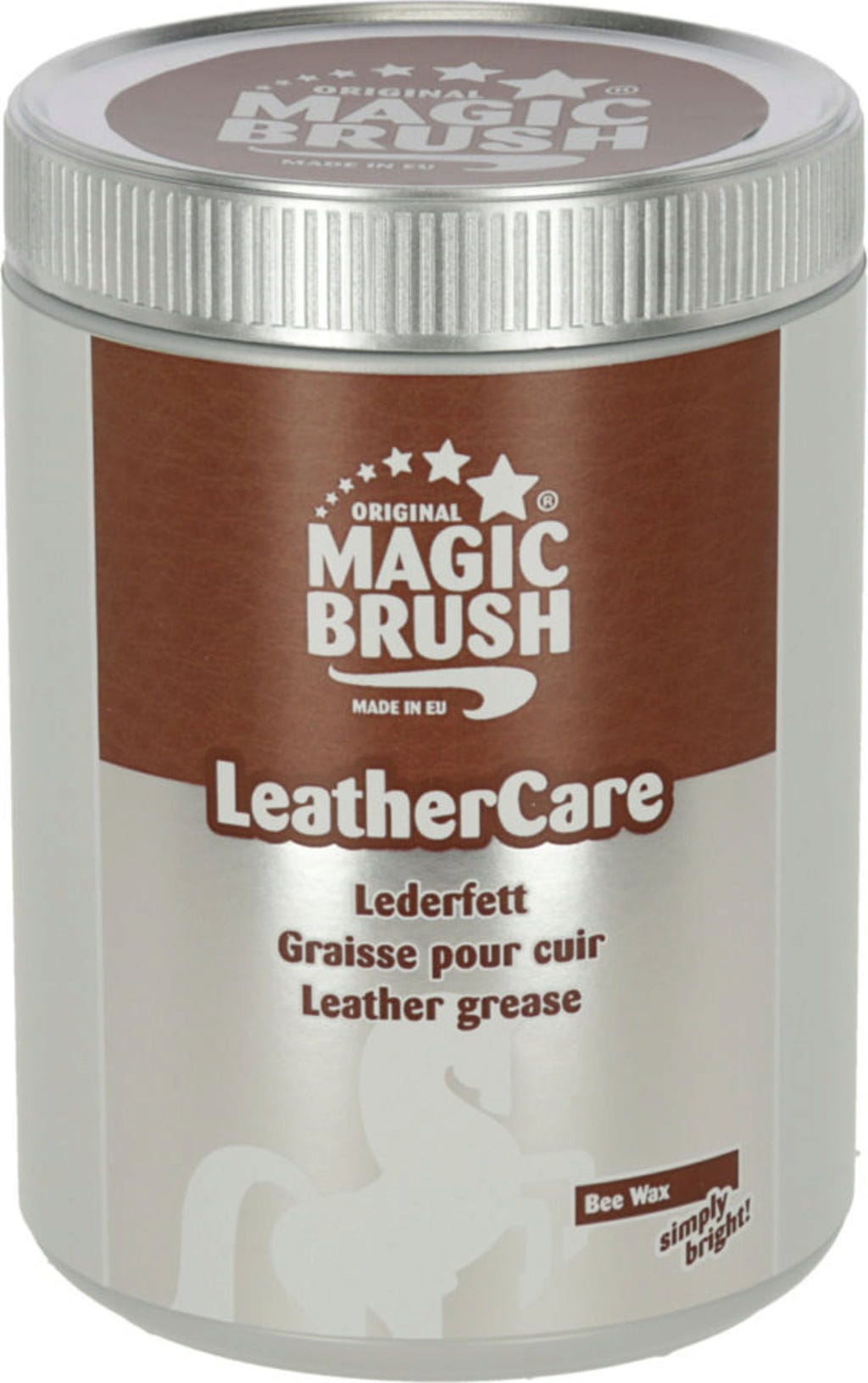 Esta grasa cuida y prolonga la vida útil de bridas, sillas de montar, botas y todos los artículos de cuero liso. Los aceites vegetales de alta calidad penetran profundamente en el cuero, evitando la humedad y las roturas. Incluso el cuero muy desgastado y endurecido recupera su brillo y flexibilidad mediante una aplicación regular.