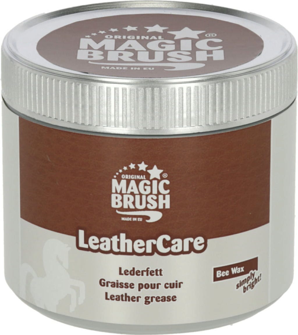 Esta grasa cuida y prolonga la vida útil de bridas, sillas de montar, botas y todos los artículos de cuero liso. Los aceites vegetales de alta calidad penetran profundamente en el cuero, evitando la humedad y las roturas. Incluso el cuero muy desgastado y endurecido recupera su brillo y flexibilidad mediante una aplicación regular.