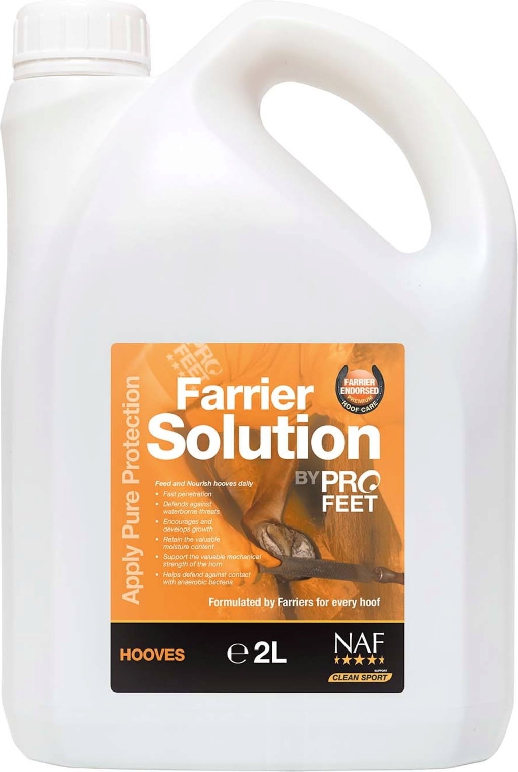 PROFEET Solución para herrador es un gel viscoso de cuidado con importantes nutrientes y ácidos grasos que favorecen la flexibilidad del Casco de la mejor manera posible. Desarrollado por herradores, Farrier Solution ha sido especialmente formulado para fortalecer y reforzar el material del casco. La fórmula penetra profundamente en el cuerno y puede prevenir los cascos quebradizos y secos. La crema rodea la cápsula del casco como una capa protectora y puede dificultar la penetración de bacterias no deseadas en el casco. Este gel para cascos, que se presenta en un práctico envase con un cepillo integrado de cerdas naturales, es ideal para el cuidado diario de los cascos.