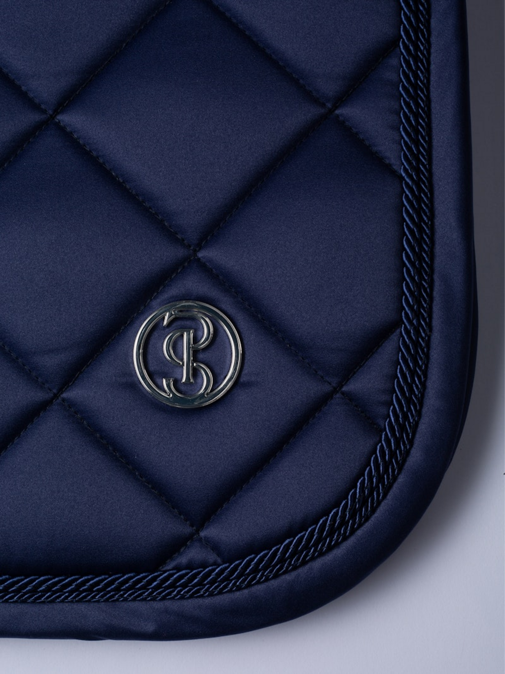La mantilla para doma clásica Satin Serenity combina un diseño elegante con la máxima comodidad. Su corte anatómico ofrece un amplio espacio en la cruz, lo que favorece la libertad de movimiento del caballo. Las almohadillas antideslizantes evitan que se deslice, mientras que el forro interior de secado rápido elimina eficazmente la humedad y el sudor. El acolchado de grosor medio ofrece estabilidad y una cómoda amortiguación. La silla de montar está adornada con la icónica cita PS a lo largo del lomo y el elegante logotipo metálico.