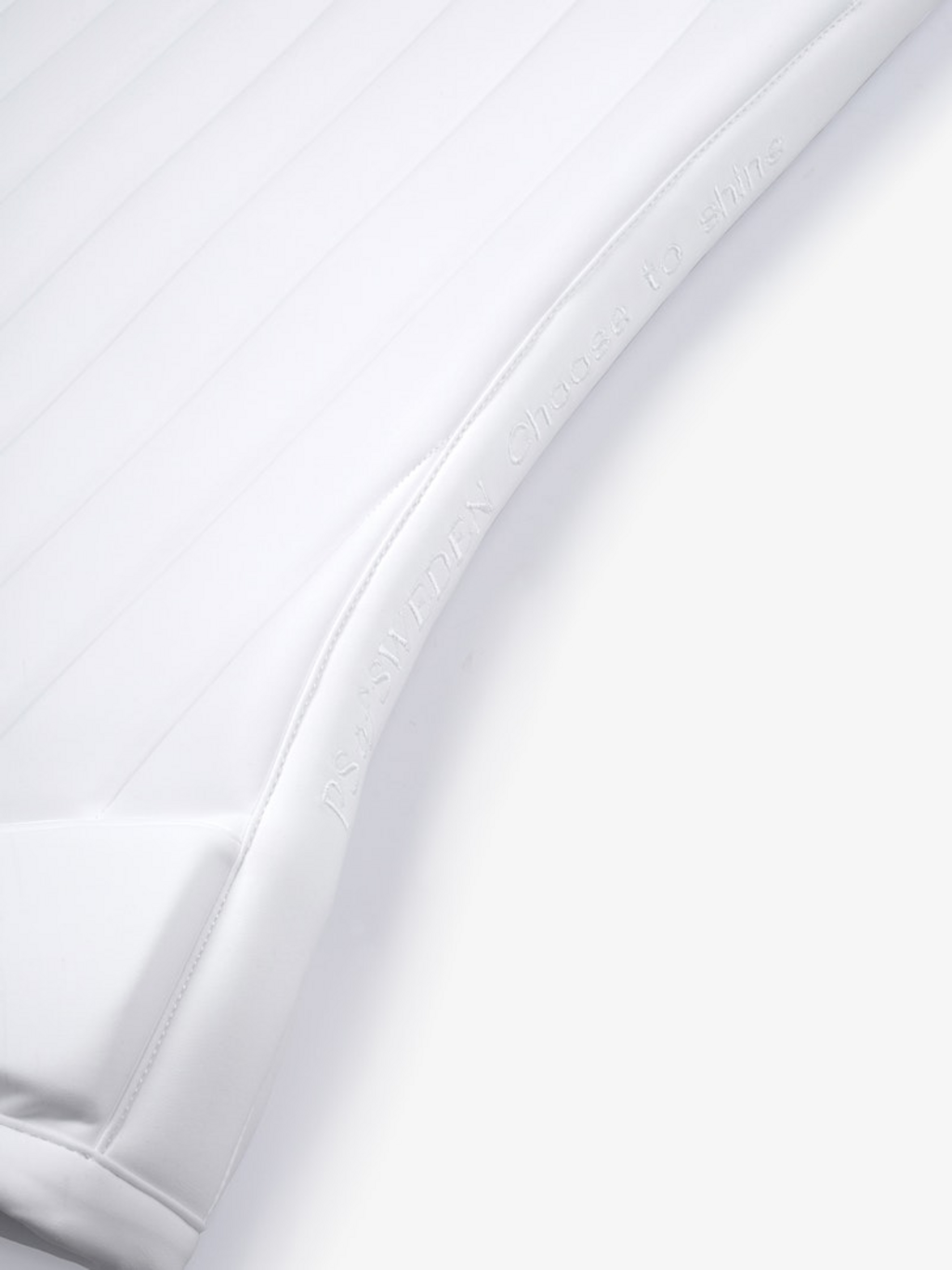 Para garantizar que la mantilla se mantenga siempre firmemente en su sitio, está equipada con almohadillas antideslizantes que evitan que se deslice. El forro transpirable Super Quick Dry aleja la humedad de forma fiable y garantiza un secado rápido de la mantilla después de la cabalgada. Su atractivo aspecto incluye el clásico diseño acolchado a rayas, los ribetes decorativos y la discreta inscripción PS a lo largo del lomo. Un logotipo bordado en ambos lados completa el elegante diseño.