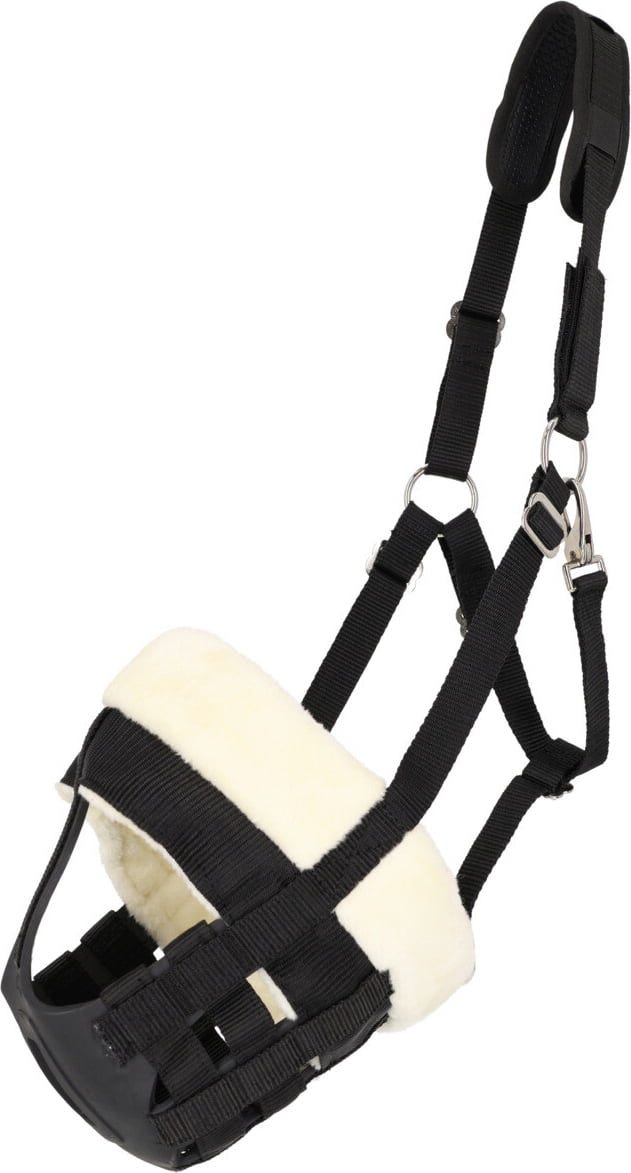 Este bozal es la solución ideal si quieres controlar la ingesta de hierba de tu caballo sin renunciar a la comodidad. El suave acolchado de piel sintética de cordero a lo largo de los bordes evita eficazmente las rozaduras en las zonas sensibles del hocico. El diseño es deliberadamente transpirable, lo que permite al caballo respirar y beber libremente, mientras que la placa base limita eficazmente el pastoreo.