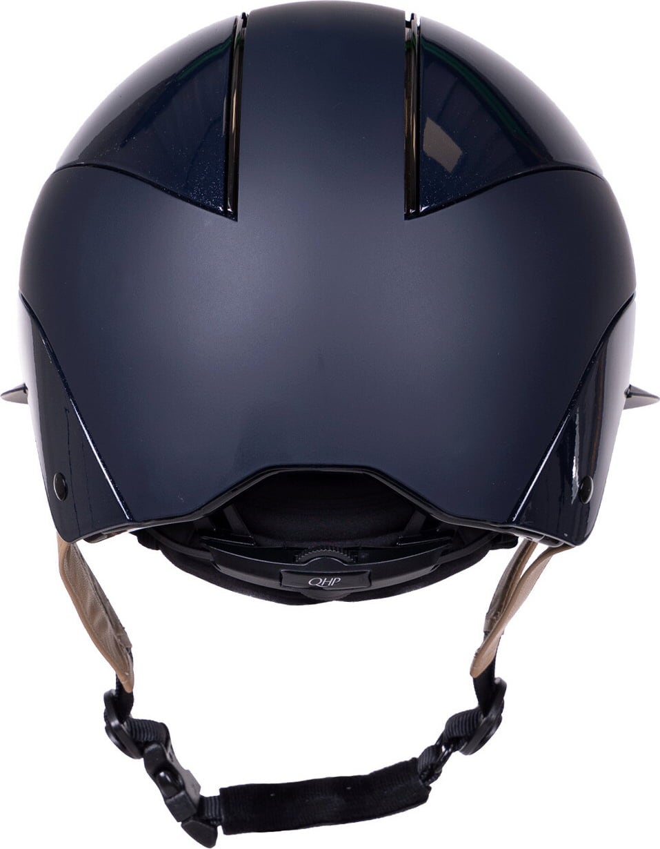 Este elegante casco de equitación de QHP es la elección ideal para quienes buscan estilo y comodidad. La carcasa exterior presenta un refinado acabado mate con un ligero brillo brillante que le da un toque de elegancia. La particular visera polo no solo añade un detalle sofisticado, sino que también ofrece una mejor visibilidad bajo el sol.