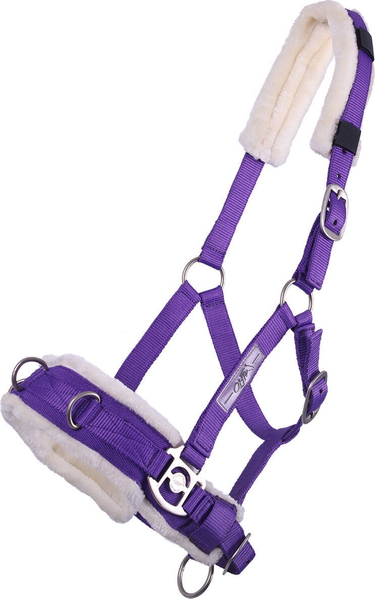 - Sujeción segura: hebillas en la correa de la barbilla, la muserola y la caperuza para adaptar con precisión el cabestro a la forma de la cabeza del caballo.