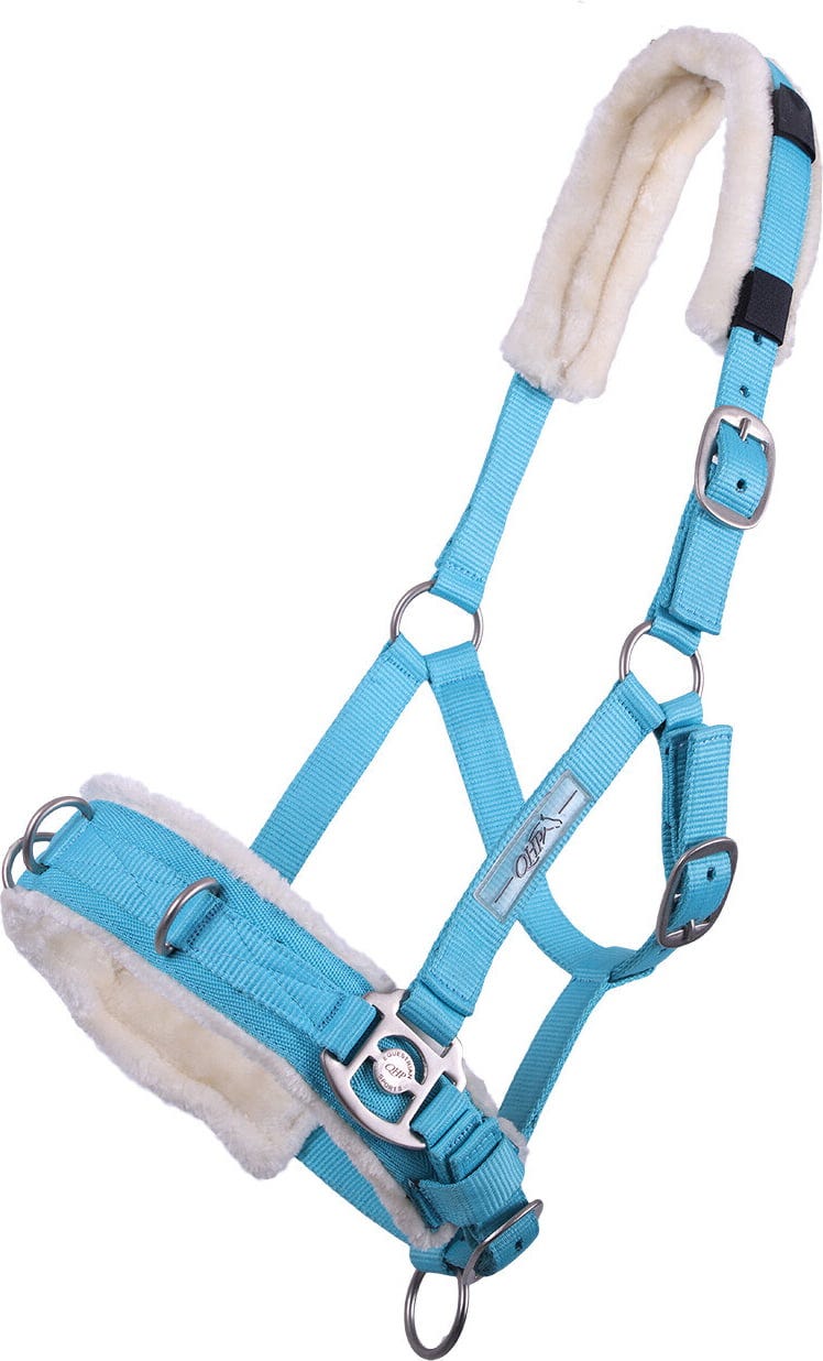 - Sujeción segura: hebillas en la correa de la barbilla, la muserola y la caperuza para adaptar con precisión el cabestro a la forma de la cabeza del caballo.