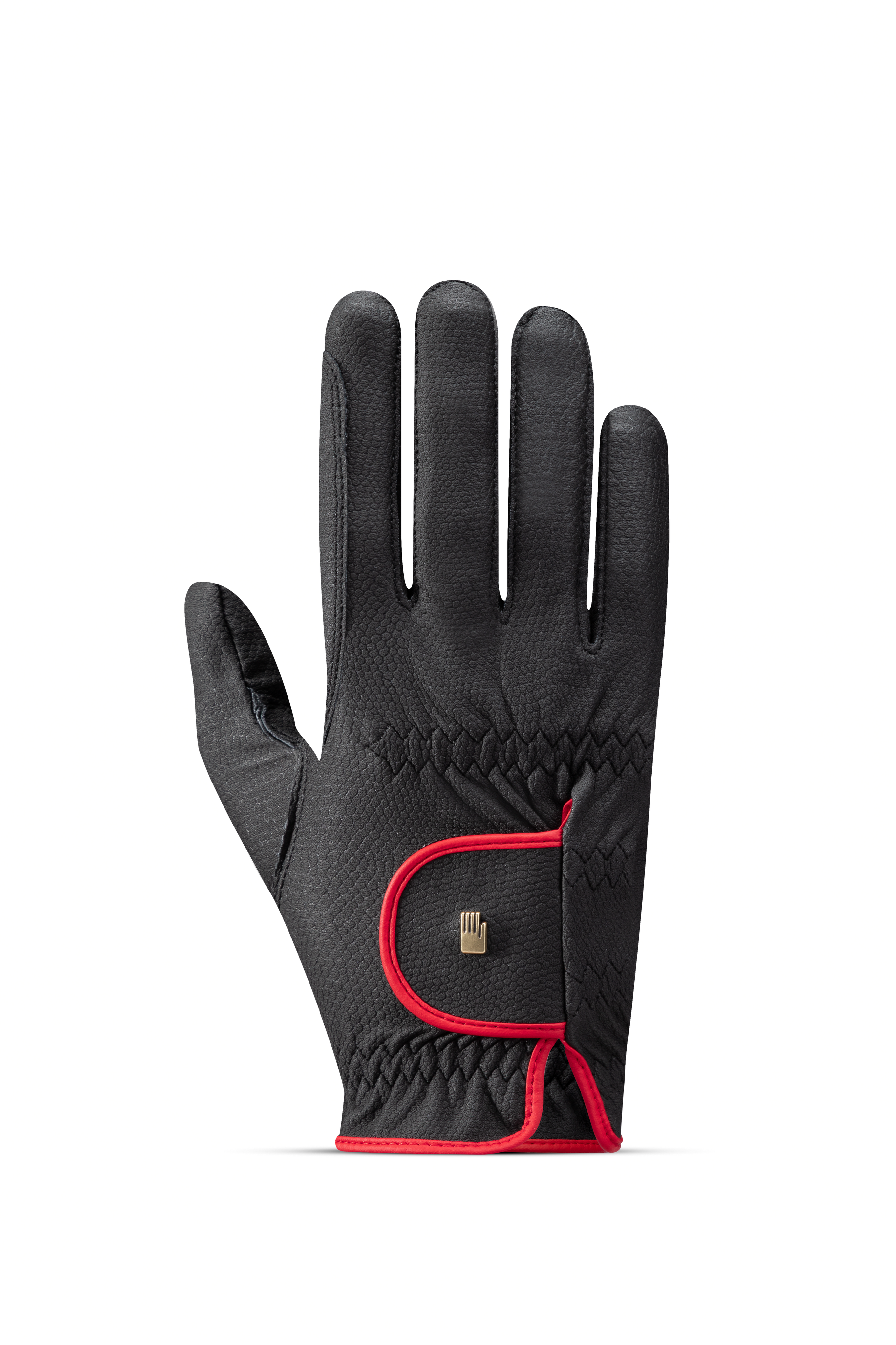 Estos guantes de equitación están fabricados con ROECK-GRIP® elástico, suave y transpirable. Se ajustan como una segunda piel, son muy ceñidos y garantizan un buen agarre de las riendas.
