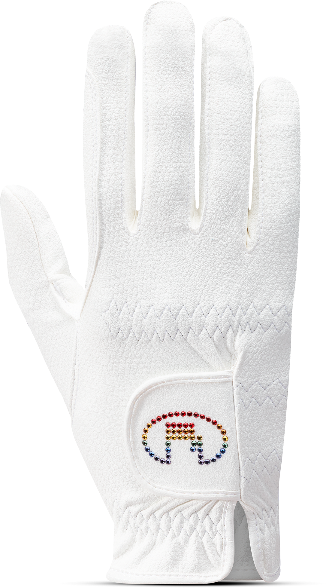 El clásico guante de equitación MARNE está disponible en un sencillo color blanco. El modelo se completa con el logotipo de Roeckl, realizado con elegantes piedras Swarovski en los colores del arcoíris. Con estos colores, Roeckl quiere apoyar los valores de la comunidad LGBTQ.