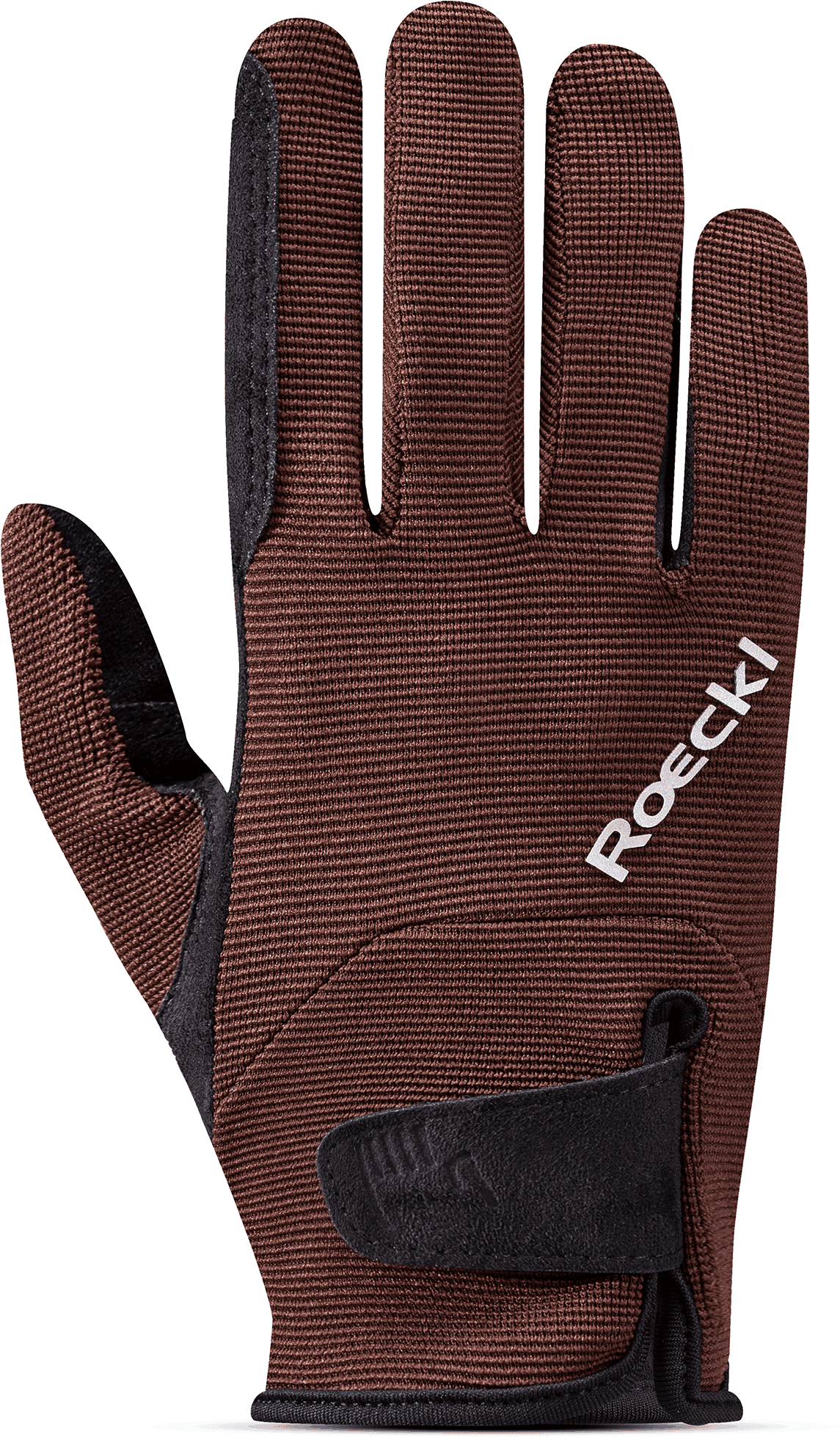 Cómodos, elásticos y funcionales: así son los guantes de equitación Meura de ROECKL Sports. La piel sintética de aspecto de ante hace que el guante sea un accesorio elegante y resistente perfecto para los deportes ecuestres.