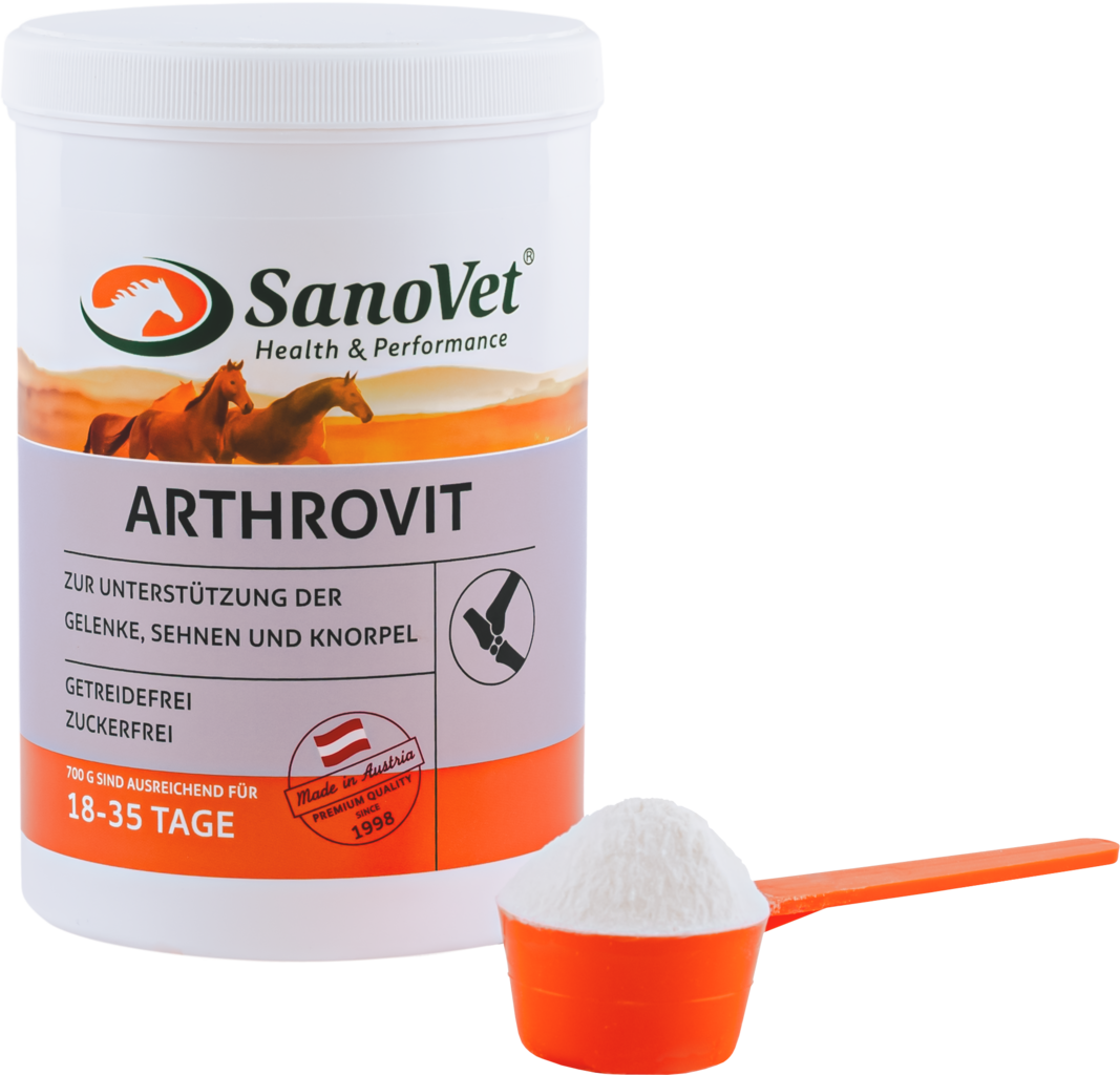 SanoVet recomienda humedecer ligeramente el alimento con ARTHROVIT, ya que se trata de un polvo muy fino. Esta forma de polvo fino tiene la ventaja de que puede absorberse de forma rápida y fácil.