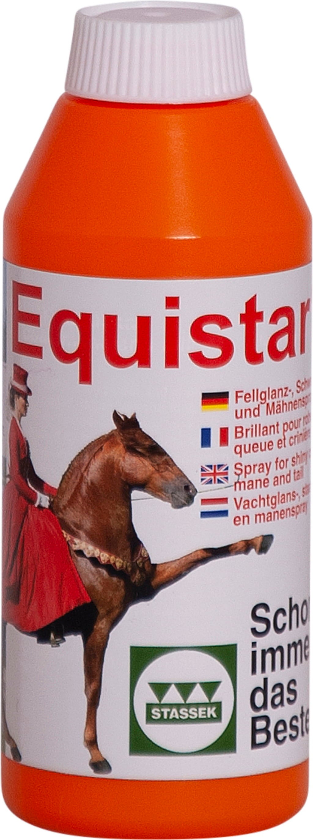 Equistar es absolutamente no tóxico, tiene un pH neutro y es extremadamente agradable para la piel. Equistar no impide la respiración de la piel y protege la flora natural de la piel y el pelaje. Por lo tanto, Equistar también es adecuado para caballos muy sensibles. Equistar no es graso y se puede lavar con champú.