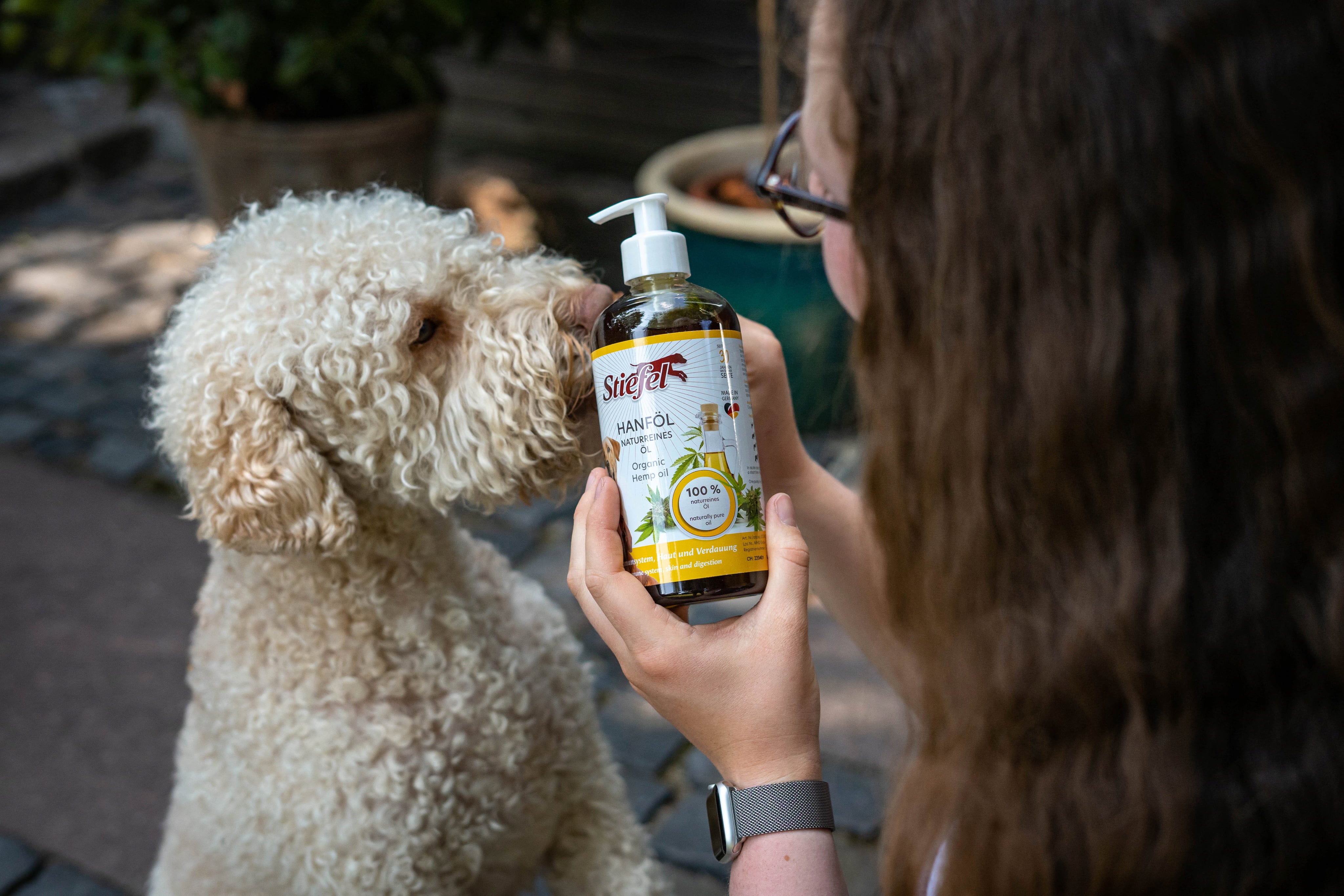 El aceite de cáñamo de Stiefel es un producto 100 % natural y adecuado para perros en todas las etapas de la vida. Sus ingredientes pueden cuidar la piel y el pelaje del perro y reforzar las defensas del animal.
