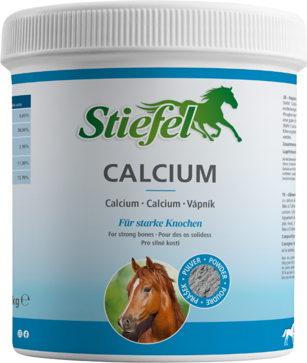 El calcio es necesario principalmente durante el crecimiento para formar huesos fuertes. Por tanto, es ideal para la alimentación de potros y caballos jóvenes. Calcium de Stiefel también está recomendado para cubrir los requerimientos de calcio de yeguas lactantes y caballos mayores con síntomas de deficiencia de calcio debido a la alimentación.