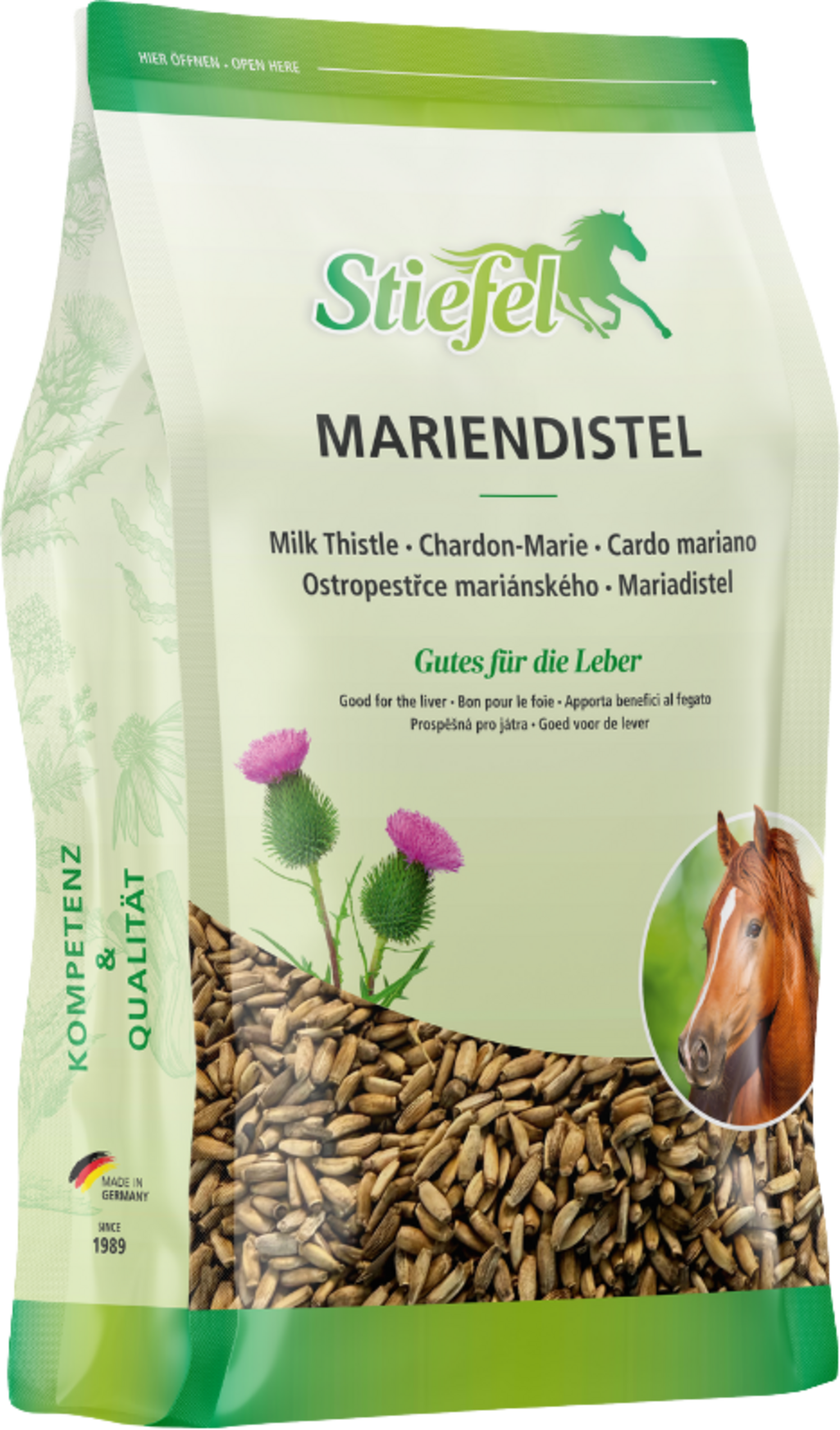 Las semillas de cardo mariano de Stiefel están hechas de semillas de cardo mariano 100 % puras. Tienen valiosas sustancias amargas y un alto contenido de complejo de silimarina. Se dice que la semilla de cardo mariano tiene un efecto antioxidante, regenerador, ligeramente laxante y estabilizador del hígado. Las sustancias amargas que contiene pueden estimular la función del hígado. El complejo de silimarina puede eliminar los radicales libres que se producen durante la desintoxicación del hígado y favorecer la regeneración del tejido hepático.