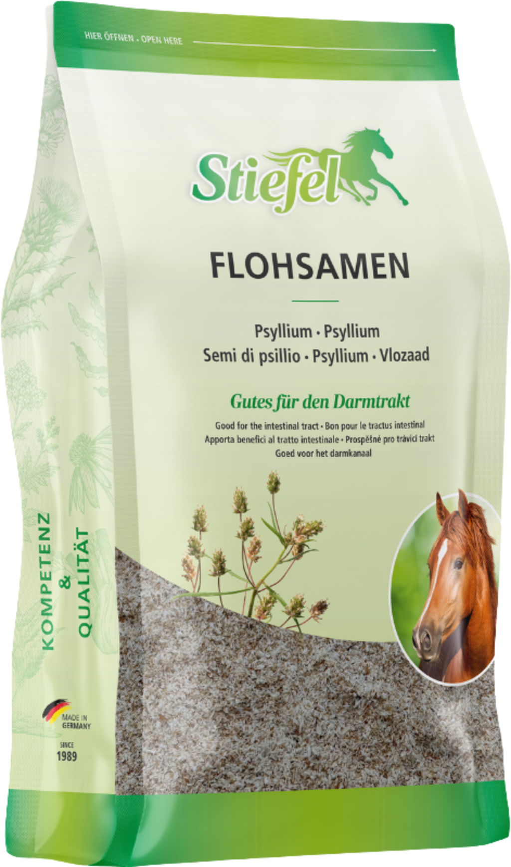 Las cáscaras de Psyllium de Stiefel están hechas de Psyllium 100 % indio. Las cáscaras del Psyllium tienen un mayor poder de hinchamiento que las propias semillas y pueden retener 50 veces más agua. Por lo tanto, las cáscaras de Psyllium pueden apoyar positivamente la función de autolimpieza del intestino. Debido al alto contenido de mucílago de las cáscaras, la tierra y la arena pueden adherirse al intestino y excretarse sin ningún problema. La actividad intestinal también se puede mejorar, ya que la hinchazón en el intestino aumenta la presión de llenado, estimulando así el peristaltismo.