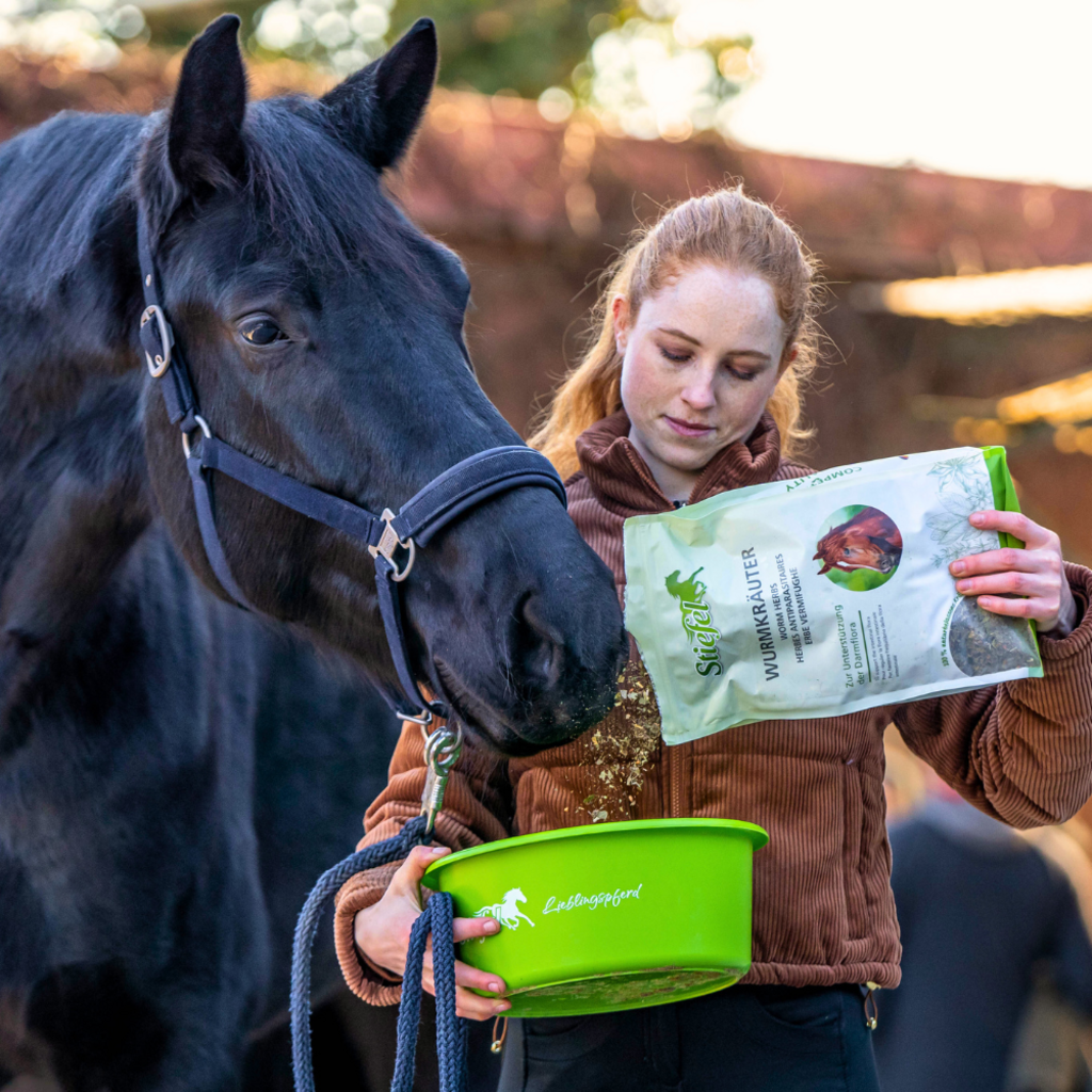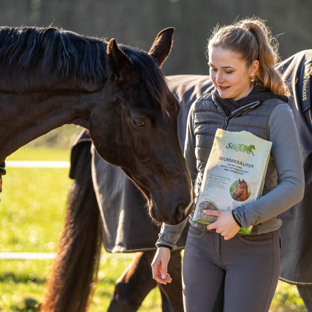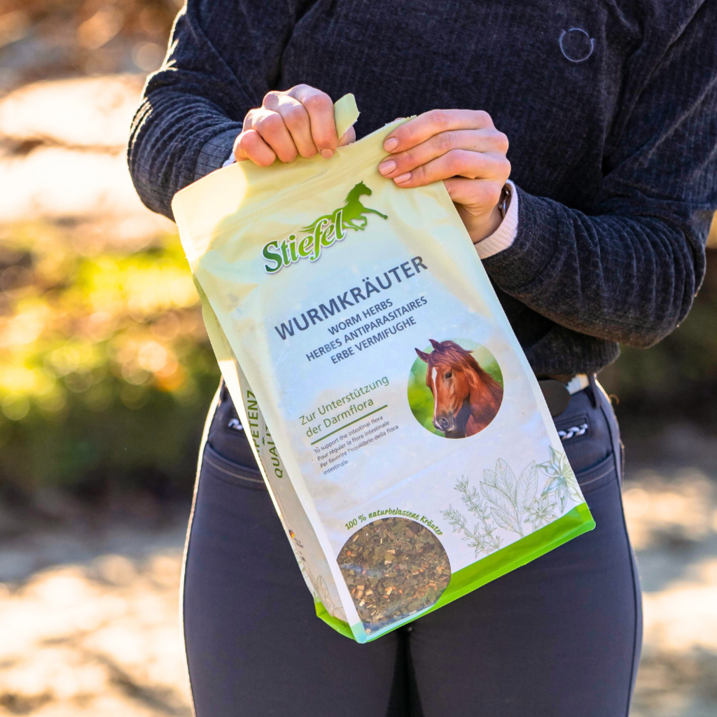 Las hierbas antigusanos de Stiefel son una mezcla de hierbas especialmente seleccionada para regular la flora intestinal. Las hierbas seleccionadas contienen muchas sustancias amargas y taninos, que pueden tener un efecto desagradable en el entorno intestinal de los gusanos. Además, administrar este producto a tu caballo puede ayudar a regenerar la mucosa intestinal después de una infestación por gusanos.