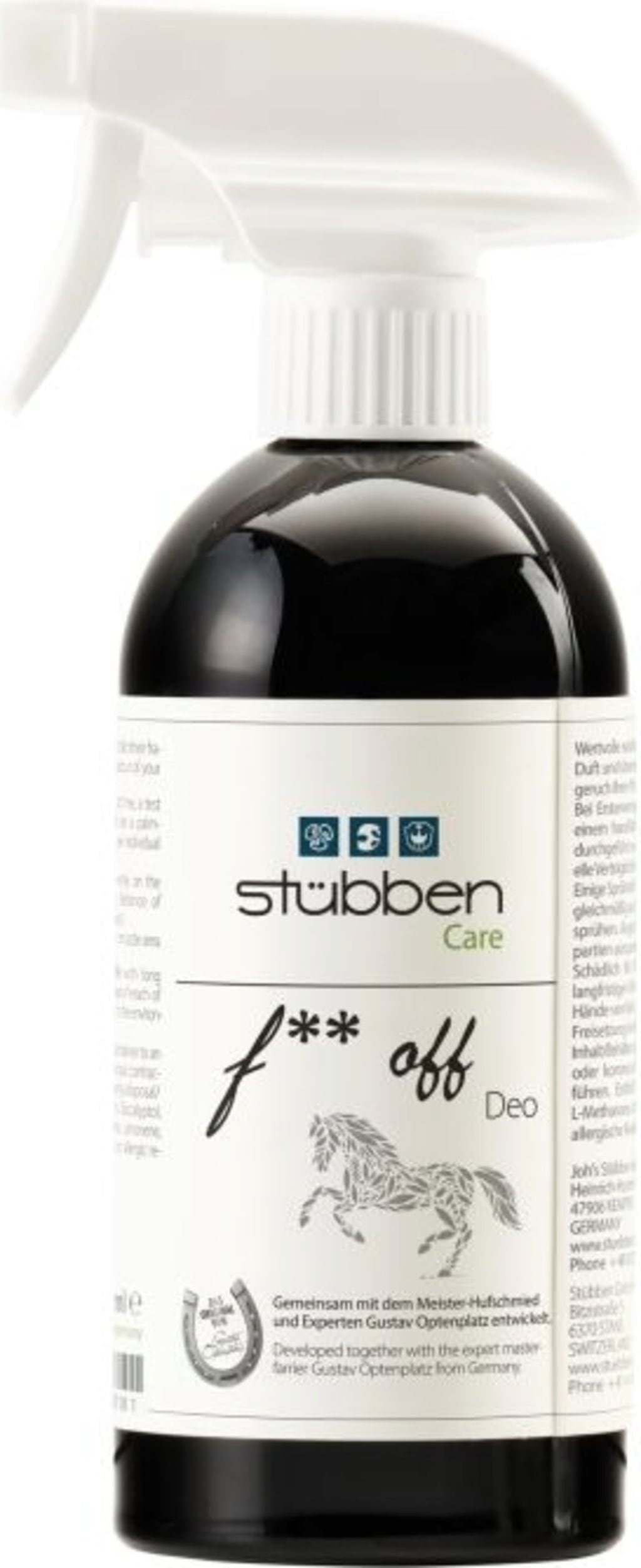 Prueba los beneficios del desodorante Stübben F** off para tu caballo. Este spray, a base de aceites naturales, deja una fragancia duradera en el pelaje de tu caballo. Es fácil de aplicar, se absorbe rápidamente y garantiza que tu caballo tenga un aspecto impecable. El práctico envase de 500 ml lo hace ideal para el uso diario o para viajar.