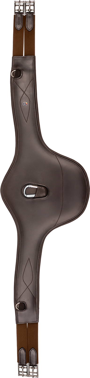 Para un alto confort durante el ajuste, la cincha está equipada con inserciones elásticas en ambos extremos. Las robustas hebillas de rodillo de acero inoxidable permiten un cierre sencillo y delicado con el material. Para la fijación de riendas auxiliares o pecheras, la cincha dispone de un mosquetón de alta calidad situado en el centro, así como de anillas en D adicionales integradas lateralmente.