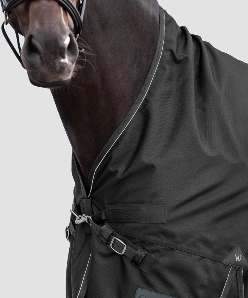 Con su cálido relleno de 200 g, Scandic mantiene a tu caballo cómodo y caliente en los días más fríos y también cuenta con un forro antibacteriano. El corte de cuello alto es ideal porque se coloca más arriba en el cuello, lo que evita eficazmente las rozaduras en la zona sensible de la cruz y la crin. Además, cuenta con una suave inserción de espuma a ambos lados de la cruz. Esta innovadora característica alivia considerablemente la presión en los puntos delicados, lo que aumenta significativamente la comodidad del caballo.