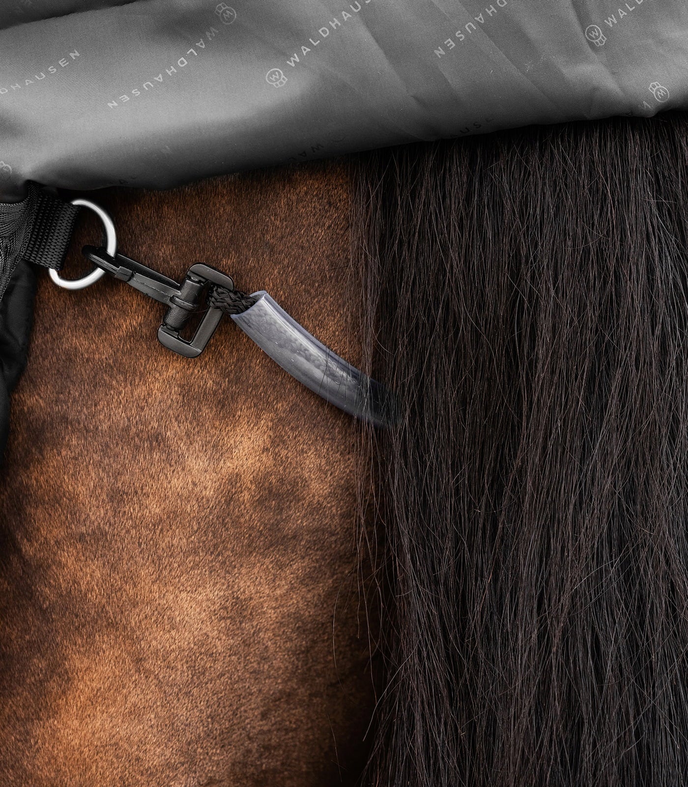 El ajuste está cuidadosamente diseñado: el práctico cierre delantero en V garantiza una sujeción estable y, junto con las tres correas de la cincha, evita los molestos deslizamientos. La libertad de movimiento está siempre garantizada gracias al amplio fuelle. Para una mayor flexibilidad durante el invierno, esta manta está equipada con presillas de fijación, de modo que se puede colocar en cualquier momento un cuello que se vende por separado. La manta también cuenta con una amplia protección para la cola y un perfil reflectante que garantiza una excelente visibilidad al atardecer.