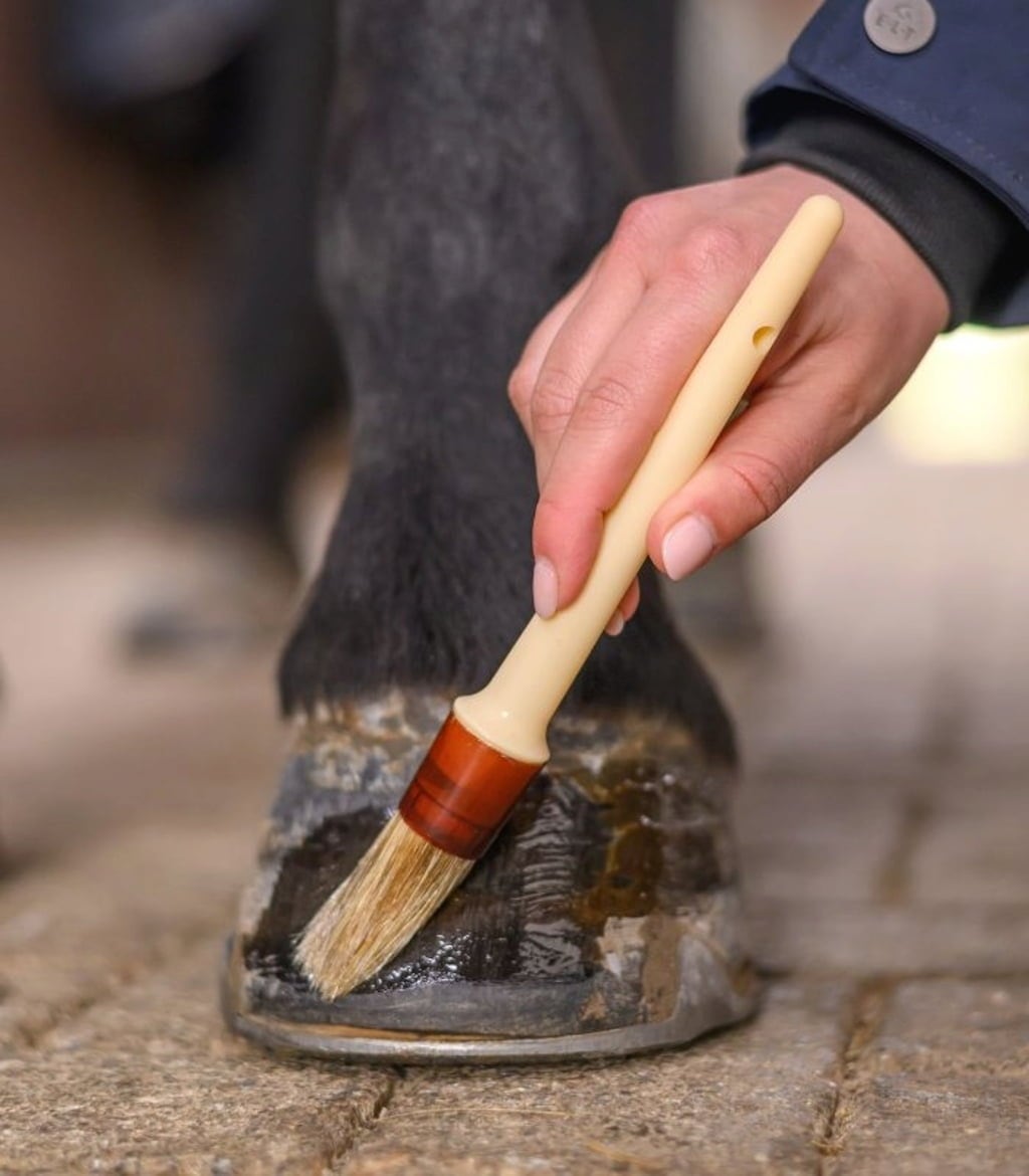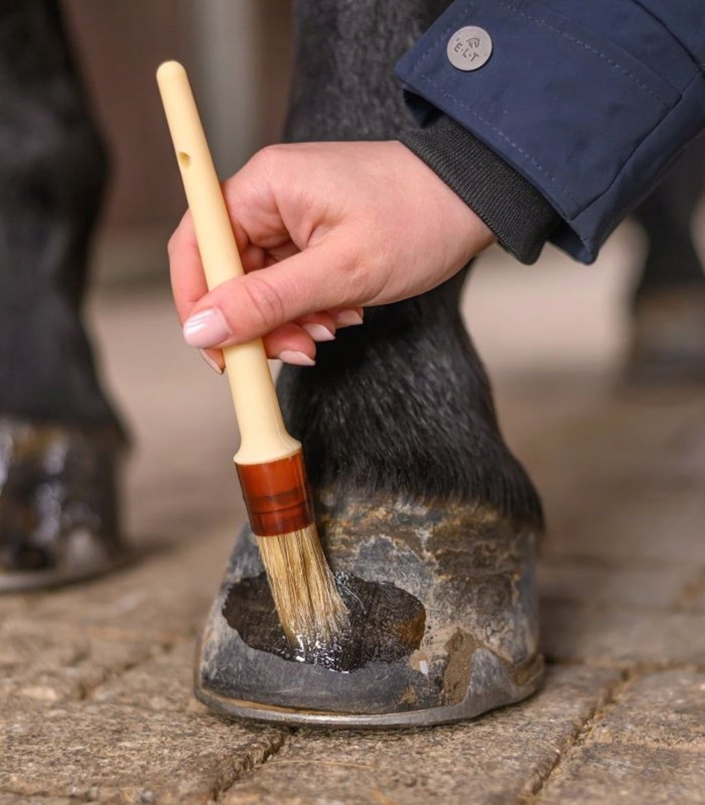 Las cerdas están hechas de cerdas de cerdo suaves y de alta calidad. Esto garantiza una capa uniforme que protege y cuida de forma fiable las pezuñas de tu caballo. ¡Una ayuda indispensable en tu caja de herramientas!