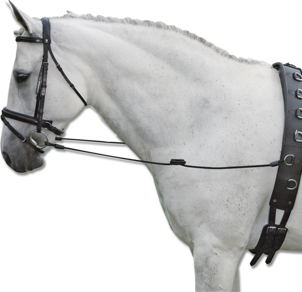 Una ventaja particular: las riendas también se pueden utilizar individualmente, por ejemplo, como riendas de martingala, lo que las convierte en un accesorio versátil para diversos fines de entrenamiento.